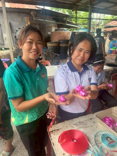 ?และมีกิจกรรม ฝึกทักษะอาชีพการทำเหรียญโปรยทานโดยวิทยากรผู้เชี่ยวชาญ มาสอนให้แก่กลุ่มเป้าหมายได้ฝึกอาชีพ ตั้งแต่เริ่มต้นเตรียมวัสดุไปจนถึงขั้นตอนสุดท้ายของการทำเหรียญโปรยทาน จากการดำเนินการฝึกทักษะอาชีพในครั้งนี้พบว่ากลุ่มเป้าหมายมีความสนใจที่จะนำความรู้และทักษะที่ได้ฝึกไปต่อยอดและสร้างเป็นอาชีพ